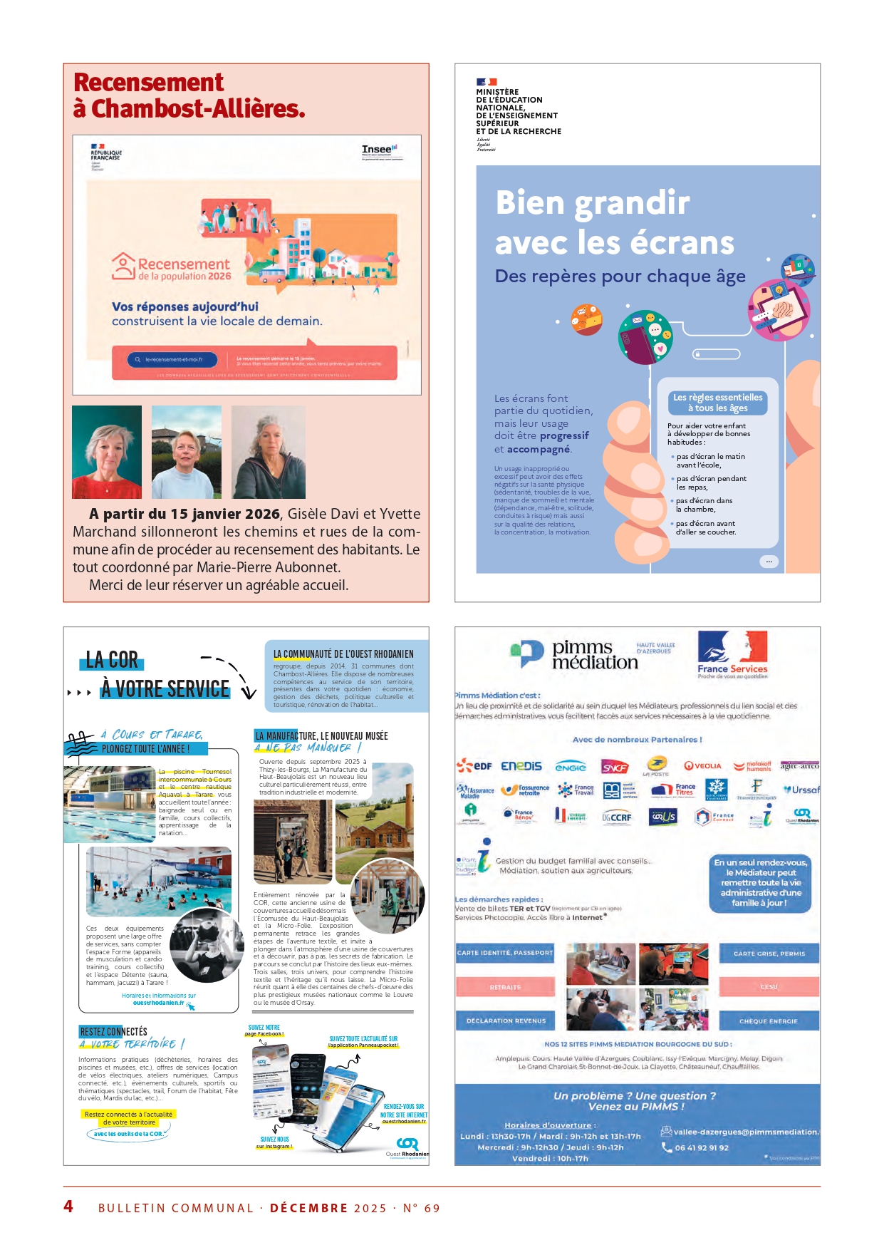 Pour lire le bulletin communal, cliquez sur la première image puis cliquez sur la flèche droite pour faire défiler les pages. Bonne lecture !